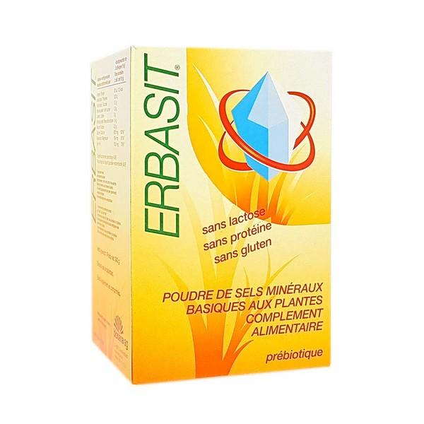 Inuline (fructo-oligo-saccharide extrait de la chicorée), citrates de calcium, potassium, sodium, magnésium, poudre de jus d'orange (saccharose, poudre de fruits), mélange de plantes (1,6%) : sureau, tilleul, fenouil, camomille et souci, citrate de fer et de manganèse. Acidifiant : acide citrique. Anti-agglomérant : dioxyde de silice. Sans lactose, sans gluten, sans protéine Information nutritionnelle pour 2 cuillères à café : Energie : 92 kJ / 22 kcal Protéines : 0,05 g Glucides : 1,5 g dont sucres : 1,5 g Lipides : 0 g Fibres alimentaires : 1,4 g Sodium : 0,5 g Calcium : 800 mg, soit 100% des VNR* Magnésium : 184 mg, soit 61% des VNR* Fer : 10,9 mg, soit 78% des VNR* *VNR : valeurs nutritionnelles de référence
