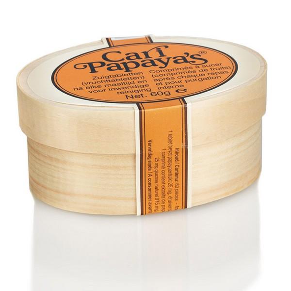 Cari papaya se compose de petits comprimés à grignoter ou à sucer en cas de nausées, vomissements, mal des transports, mal de la grossesse,… Ces petits comprimés sont joliment emballés dans une boîte en bois. Fortement recommandé de toujours l'avoir avec vous.