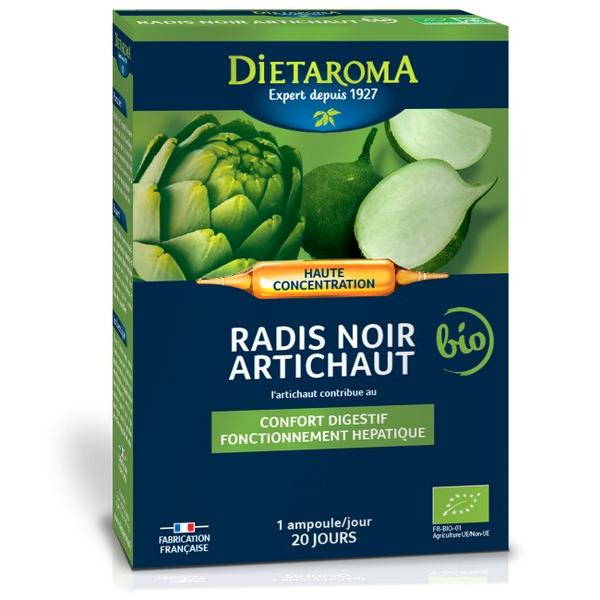 Extrait aqueux de feuille d'artichaut** (Cynara scolymus), jus de radis noir** (Raphanus sativus) et jus de sureau**