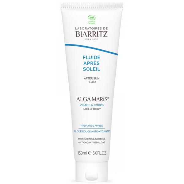 Le Fluide après-soleil certifié bio hydrate et apaise la peau suite à l’exposition solaire.