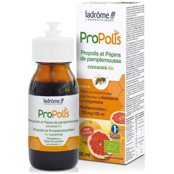 Ingrédients Extrait hydro-alcoolique de Propolis*.?(*) Ingrédients issus de l'agriculture biologique Complément alimentaire certifié par Ecocert