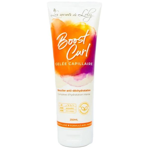 Formulée à 99,2 % d’origine naturelle, la gelée Boost Curl est un véritable complexe d’hydratation permettant de figer les boucles sans un effet carton ou mouillé. Elle est composée d’un cocktail humectant à base d’eau et de provitamine B5. En plus de figer la boucle, elle retient l’hydratation présente dans le cheveu. Son odeur sucrée à l’ananas est une pure merveille. L’eau est l’hydratant naturel par excellence. La provitamine B5 fortifie, gaine et répare. Elle rend les cheveux brillants, souples et faciles à coiffer.
