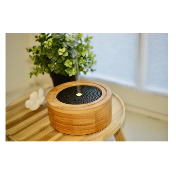 Diffuseurs d'arôme électriques, pourvus de 4 couleurs de lumière réglables. Fait de bois de bambou 3 en 1 Aromadiffuser: - Effet d’aromathérapie - Purifie l’air - Humifide l’air Avec un concept innovant et un design unique, ces diffuseurs d’arômes à ultrasons associent à la fois l’esprit des cultures orientale et occidentale. Le design et la science vont ici de pair. La technique à ultrasons consiste à pulvériser l’huile essentielle en millions de microparticules. Cela se produit sous la forme d’une fine vapeur d’eau qui s’élève comme une brume au-dessus de la lampe aromatisante. Les ingrédients de l’huile essentielle sont ainsi facilement absorbés par le corps et restent longtemps dans la pièce.