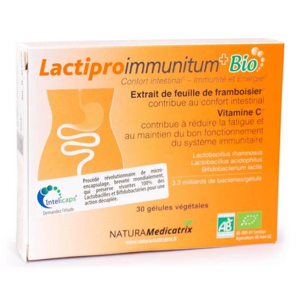 Extrait de feuilles de framboisier qui contribue au confort intestinal, ainsi que de la vitamine C qui joue un rôle dans le maintien de l’immunité normale et contribue à la réduction de la fatigue. Augmenté de Lactobacilles (Lactobacillus rhamnosus et acidophilus) et de Bifidobactéries (Bifidobacterium lactis) vivants. Cette association unique a été rendue possible grâce à la technologie d’encapsulage Intelicaps® ! Lactobacilles? et Bifidobactéries toujours préservés des conditions extérieures délétères ainsi que des acides gastrique et pancréatique grâce à la technologie Intelicaps®, notre brevet mondial. 30 gélules pour une durée de 1 mois !