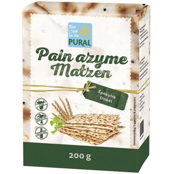Pural vous propose de goûter son Pain Azyme à l'Epeautre qui convient parfaitement à une alimentation pauvre en sel. Les fines feuilles croustillantes ont un goût légèrement grillées et sont composées seulement de farine d'épeautre et d'eau. Elles sont sans ajout de sel, de sucre ou de matières grasses. A déguster au petit déjeuner ou au repas.