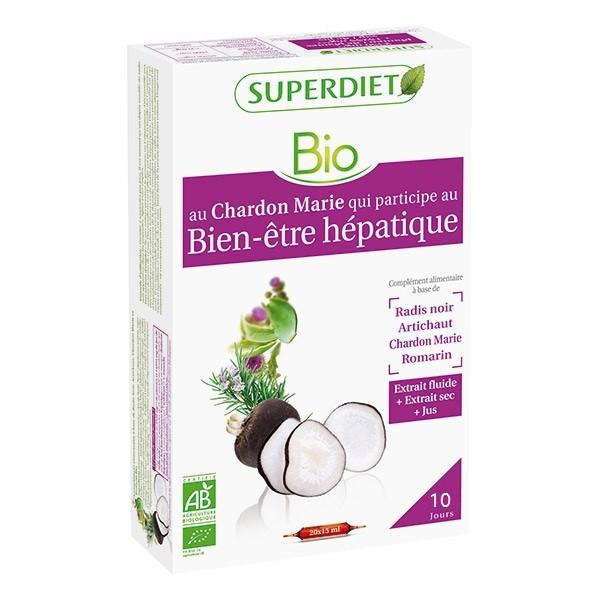 Jus de radis noir* (racine) (acidifiant : jus de concentré de citron* (fruit)) , Extrait aqueux de Chardon Marie* (semence et parties aériennes), Romarin* (feuille) et Artichaut* (feuille) , Extrait sec d'Artichaut* (feuille).*Ingrédient issu de l'agriculture biologique.