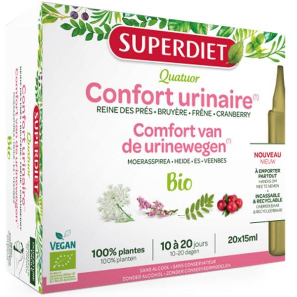 Extrait aqueux de Reine des prés* (sommité fleurie), Bruyère* (sommité fleurie) et Frêne* (feuille), Jus concentré de raisin rouge* (fruit), Extrait sec de Cranberry* titré en Proanthocyanidines (fruit).